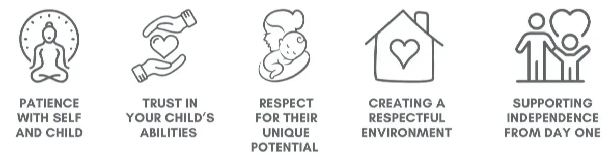Many parents crave a calming guideline for structuring their dayâbecause unpredictability in the early years often adds to stress. While not everything can be planned, that early madness can be gently methodised with our stage based Montessori-Aligned Peaceful Parenting Routineâa 'pin up on your fridge' guide designed to support your (or any other carer's) daily interactions and activities with your little one with calm, purpose, and connection.